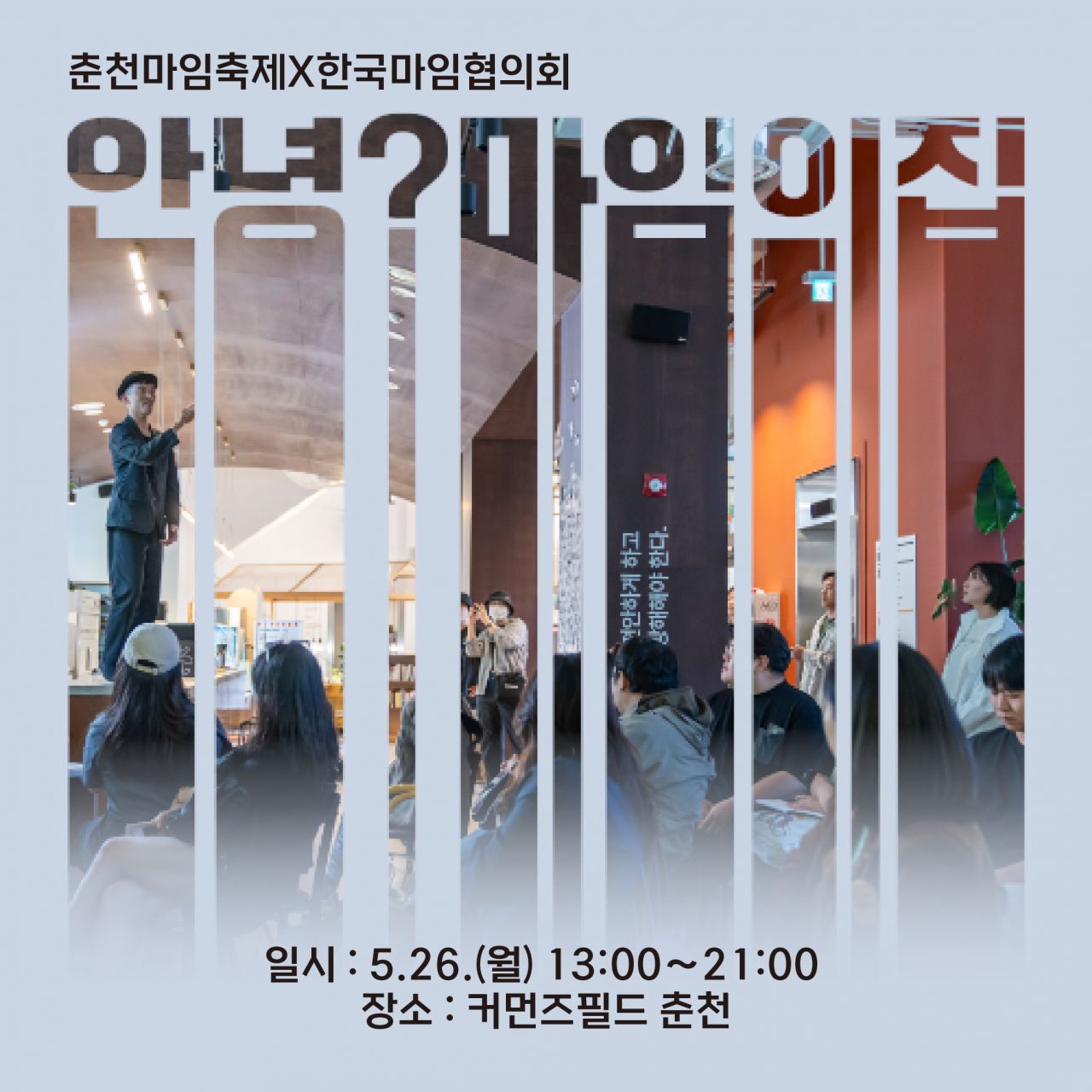 - 춘천마임축제와 춘천사회혁신센터가 함께 만드는 프로그램. 예술가들의 이야기와 워크숍, 봄을 부르는 몸짓이 가득한 하루.