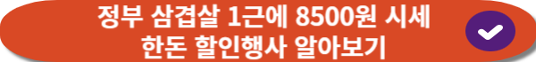 또한 정부가 최근 국내산 돼지고기 한돈 할인행사를 3월까지 연장하기로 해서 삼겹살 1근에 8500원 시세로 구매를 할수 있습니다.관련정보를 남겨드리니 한번 확인해보시기 바랍니다.